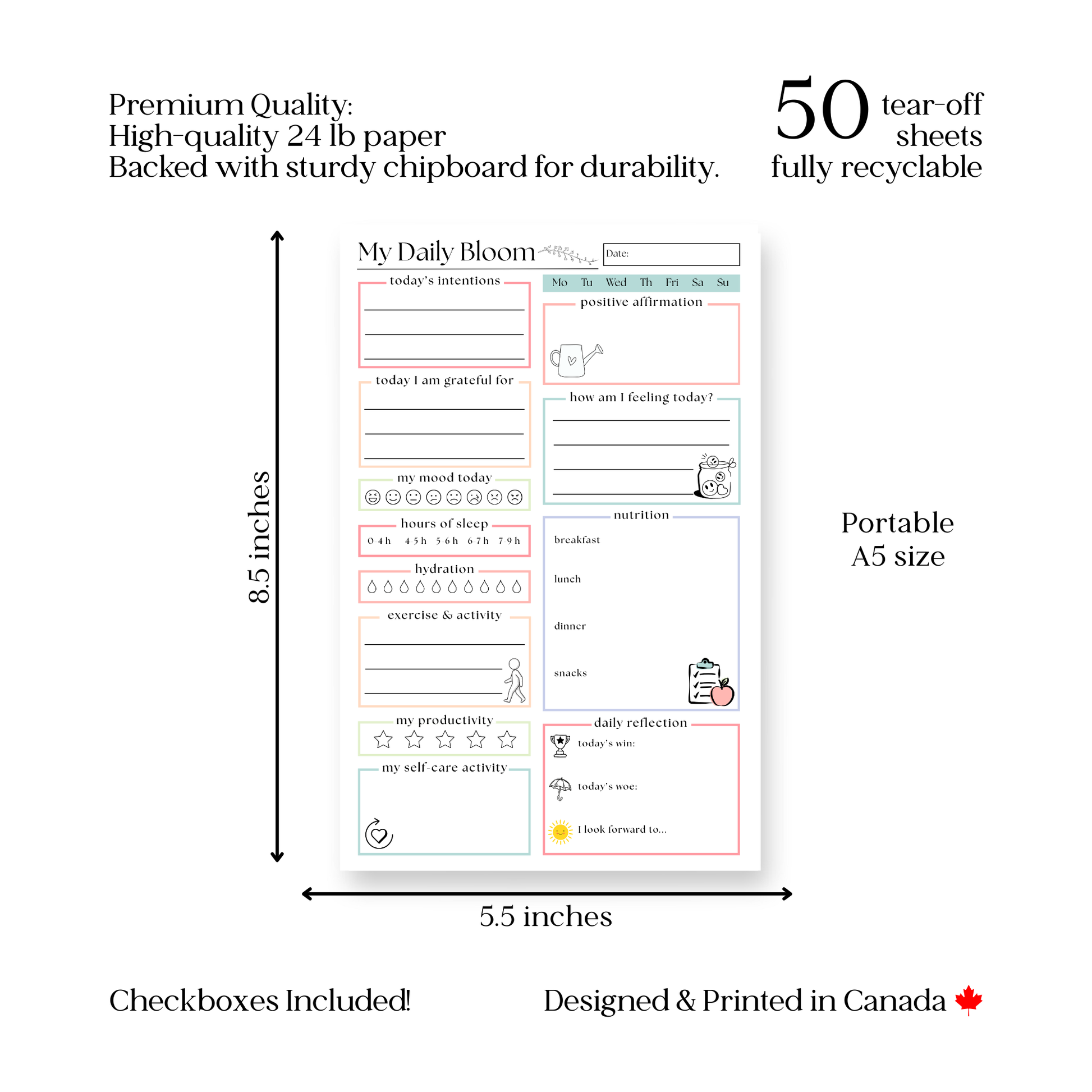My daily bloom self-care planner: 50-page notepad